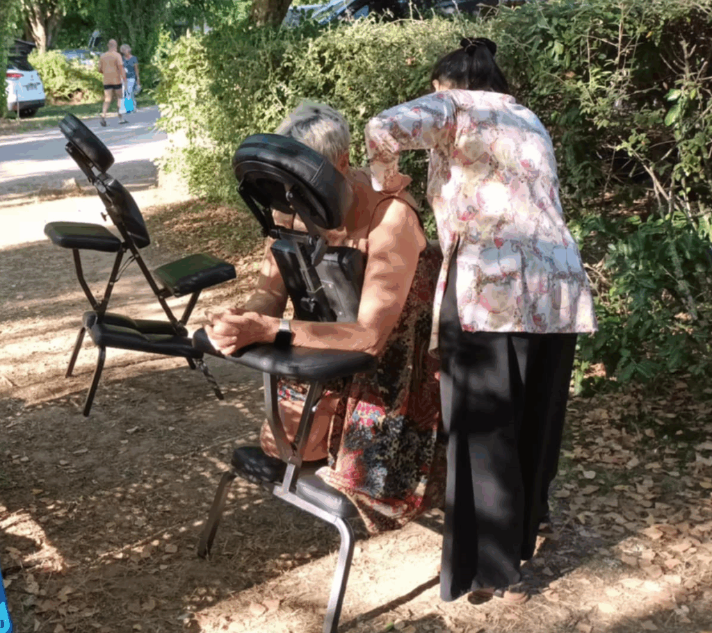 Massage sur chaise : 60 €/heure – Massage d’une durée de 15′ ou 20′ par personne.